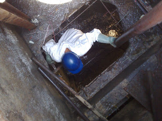 Após o esgotamento, os funcionários que farão a limpeza, deverão estar com todos os EPI's necessários, como luvas, botas de borracha, máscaras, etc.