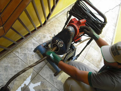 Após o hidrojateamento, será feita a escovação para a retirada dos detritos que se encontram na caixa.